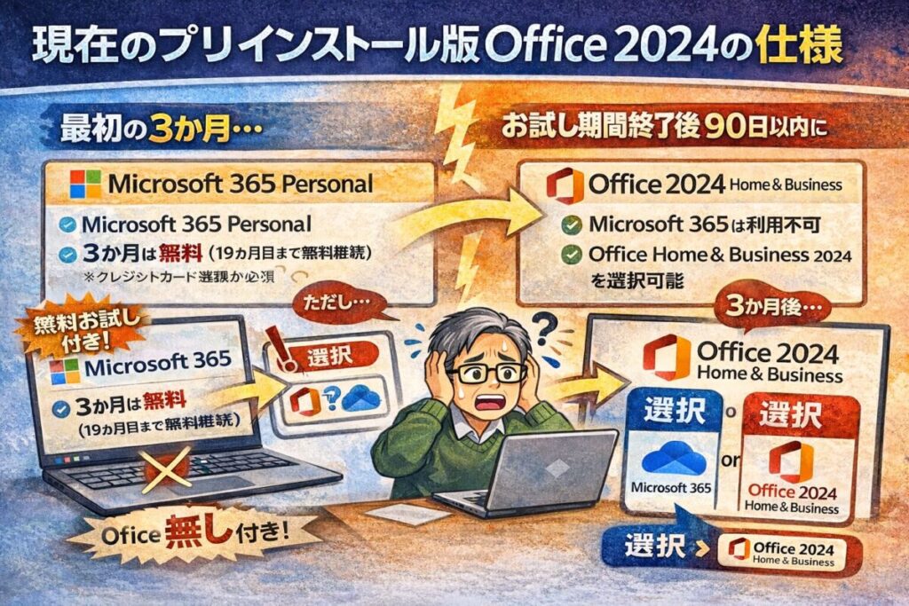 そのため、プリインストール版が付属していても、 まずはサブスクを体験させ、あとから買い切り版に戻す、 という導線が作られています。
